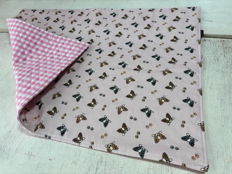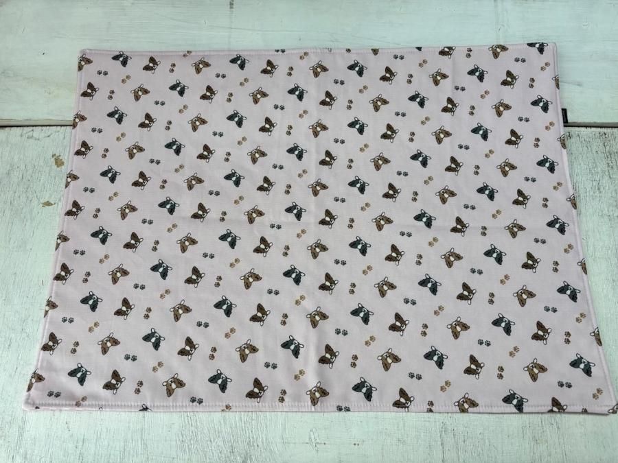 パピヨン柄の可愛らしいデザインが特徴のドッグマットです。カフェや病院の待合室でのステイマットとして、そしてケージやサークルの中で使用することができます。オックス生地を使用しており、丈夫で長くご愛用いただけます。なお、リバーシブル仕様になっているため、お好みに応じて使い分けることも可能です。