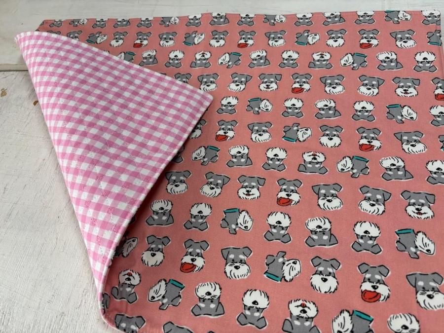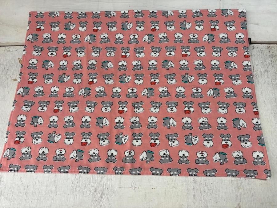 シュナウザー柄の可愛らしいデザインが特徴のドッグマットです。カフェや病院の待合室でのステイマットとして、そしてケージやサークルの中で使用することができます。オックス生地を使用しており、丈夫で長くご愛用いただけます。なお、リバーシブル仕様になっているため、お好みに応じて使い分けることも可能です。