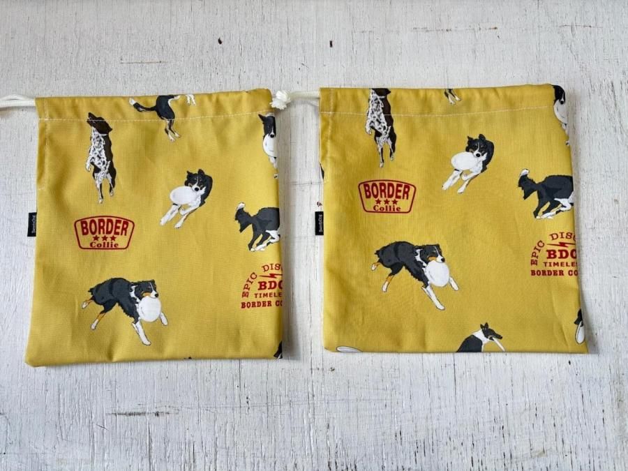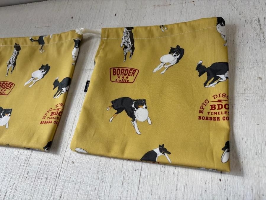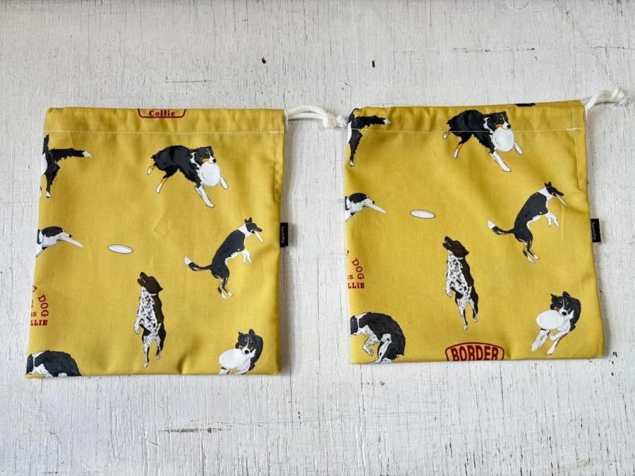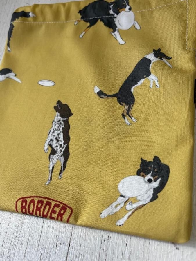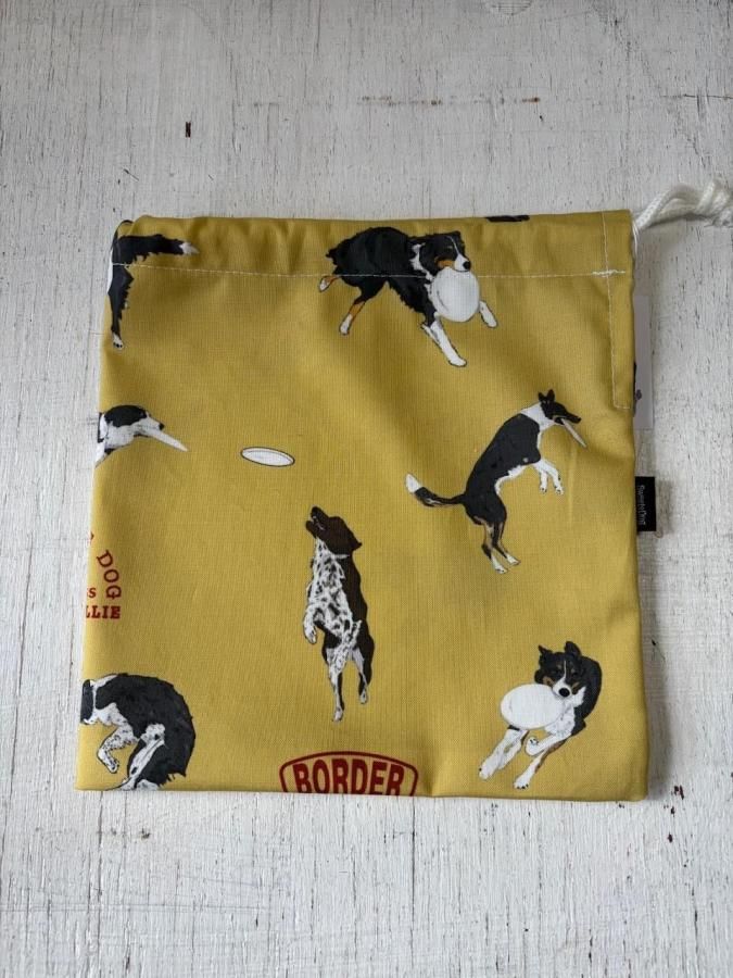 ボーダーコリーフリスビー柄 巾着袋